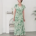おすすめワンピース:コットンリネンバックシャンフレア袖マキシワンピース