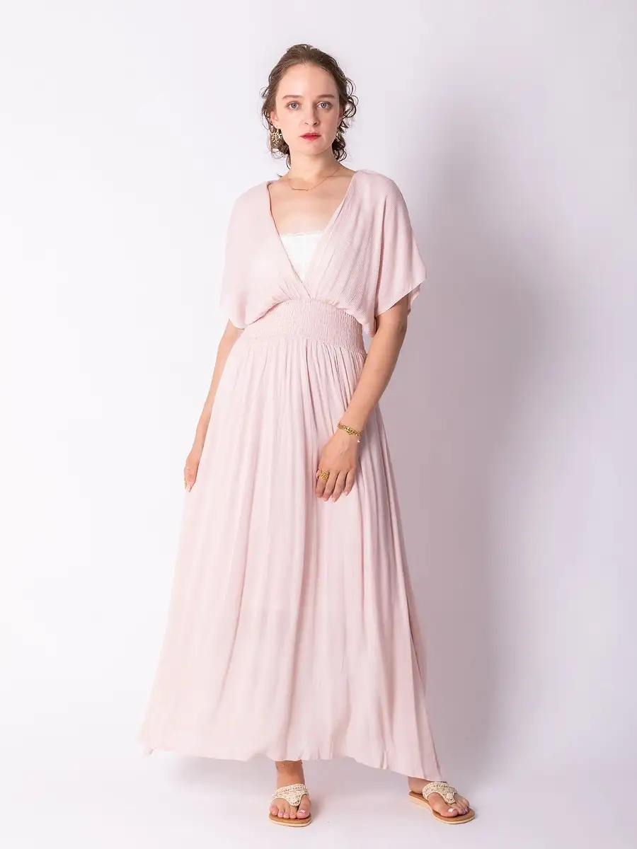 ジパングマキシワンピースは、リゾートコーデに取り入れやすい華やかさと着心地を兼ね備えたワンピースです。Vネックやドルマンスリーブ、ハイウエストデザインなど、スタイルアップを意識したディテールがそろっています。