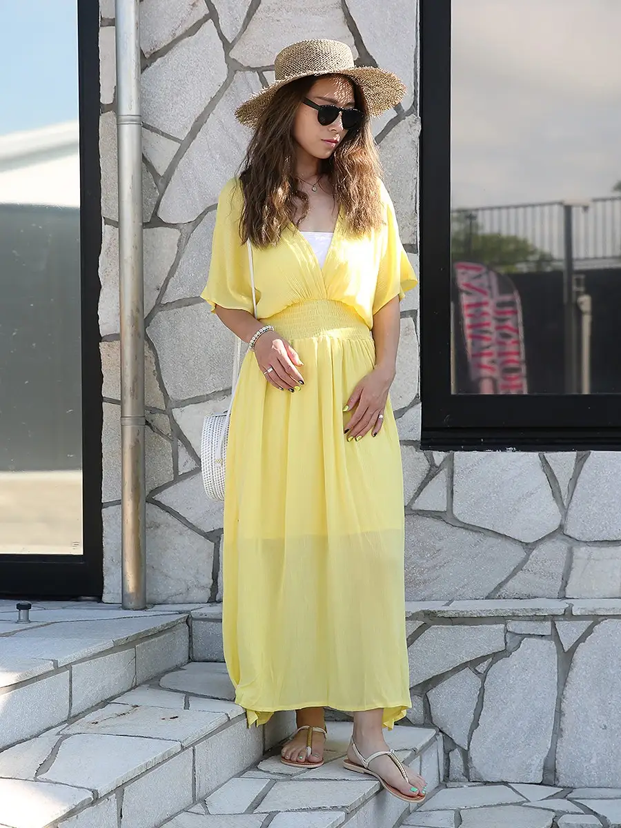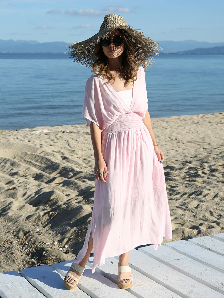 1枚でコーディネートが完成するため、旅行や夏のお出かけでも手軽にスタイリングを楽しめます。カラー選びや小物の組み合わせを工夫しながら、自分らしいリゾートコーデを楽しんでみてください。