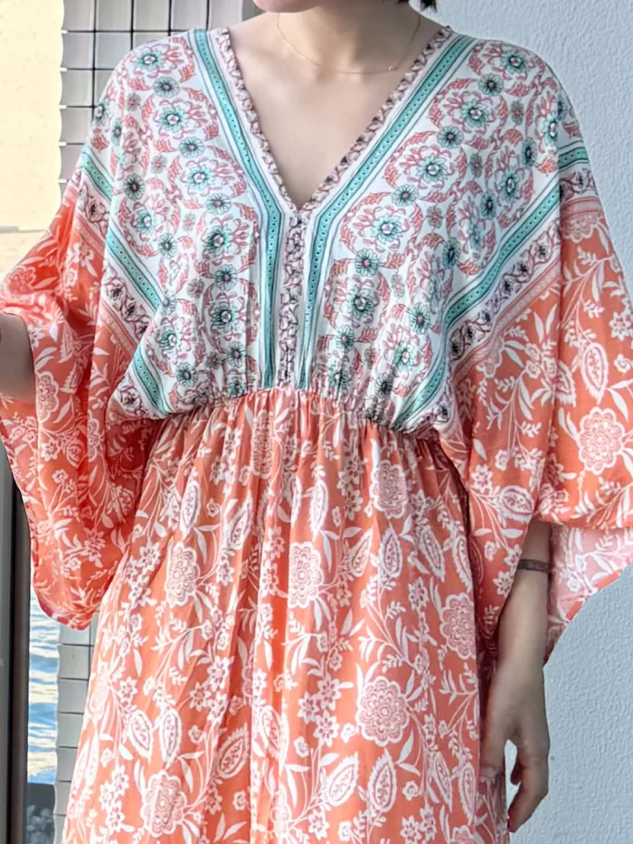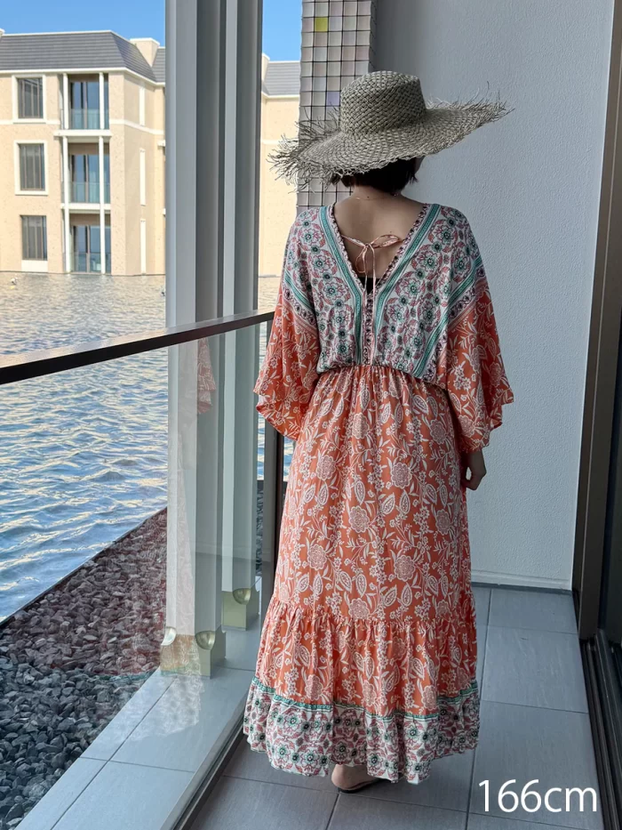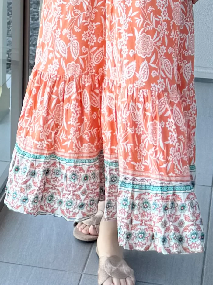 roomy by the sea|大人花柄オレンジマキシワンピース