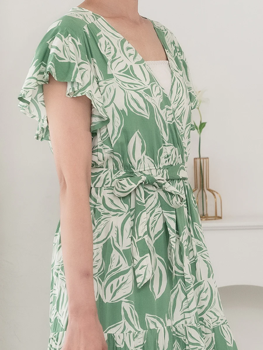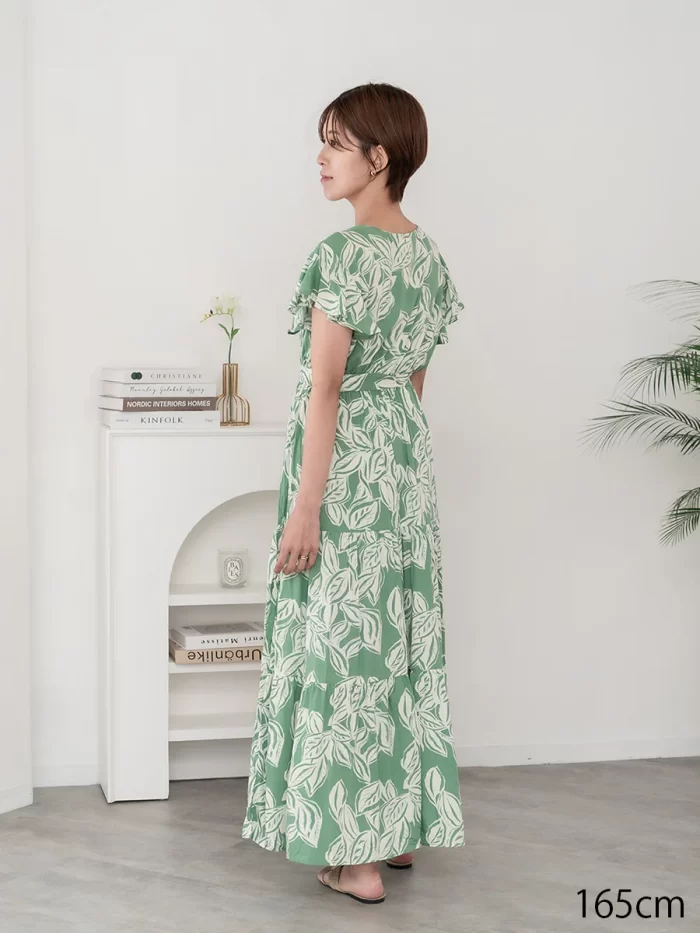 二の腕をきれいに見せる、フリルのフレンチスリーブデザインもポイントです。