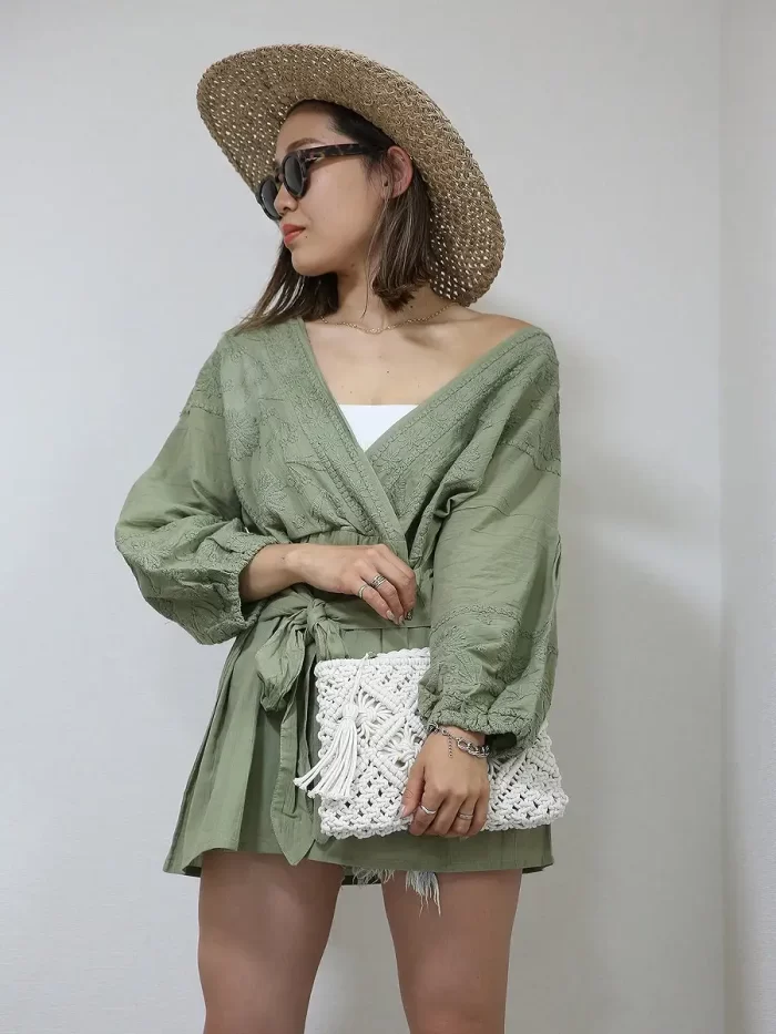 モカやホワイトなどのベーシックカラーは、普段使いしやすく着回し力も高め。一方で、ビビッドカラーや柄物はリゾートシーンで映えます。着用シーンを想像しながら選ぶのがおすすめです。